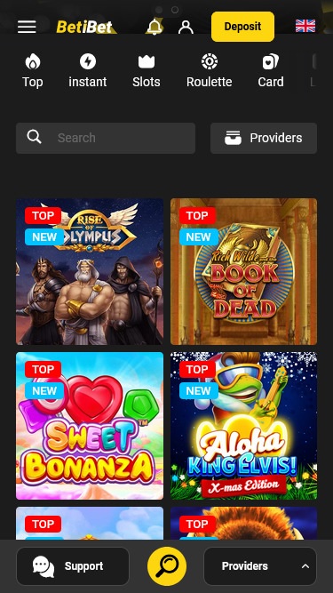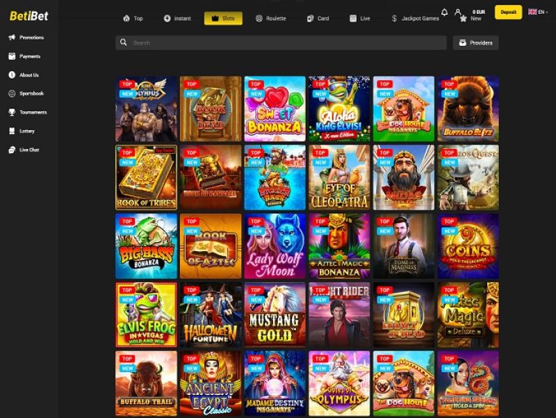बेटीबेट कैसीनो में स्लॉट गेम्स का एक प्रभावशाली संग्रह डेमो मोड में खेला जा सकता है ताकि खिलाड़ी विभिन्न प्रकार के स्लॉट गेम आज़मा सकें। "स्लॉट्स" सेक्शन आकर्षक थीम और लोकप्रिय मैकेनिक्स वाले बेहतरीन गेम्स से भरा पड़ा है।