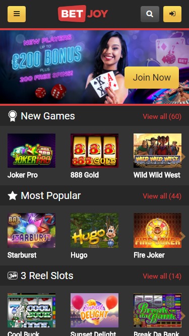 बेटजॉय कैसीनो एक ऑनलाइन सट्टेबाजी साइट है जिसकी स्थापना 2015 में कुराकाओ स्थित ब्लू गेमिंग ग्रुप द्वारा की गई थी। इस कैसीनो में विविध प्रकार के खेल, बोनस पर उत्कृष्ट दांव लगाने की शर्तें और बहुत ही उचित भुगतान शर्तें हैं, जो बेटजॉय को खेलने के लिए एक बेहतरीन जगह बनाती हैं।