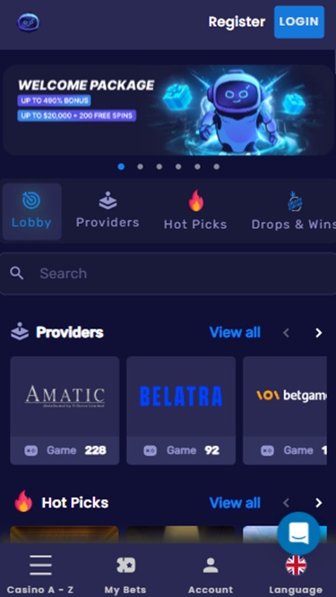 पहली नजर में, हम न केवल कैसीनो के दृश्यों से प्रभावित हुए, बल्कि उपलब्ध विकल्पों से भी प्रभावित हुए जिनमें मेगावेज़, स्लॉट्स, लाइव कैसीनो सेक्शन, टेबल गेम्स, क्रैश गेम्स, रूलेट , ब्लैकजैक , लोट्टो, स्क्रैच कार्ड्स, इंस्टेंट गेम्स, गेम शो, बिंगो , डाइस और अन्य आकर्षक श्रेणियां शामिल हैं।