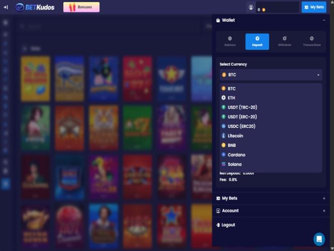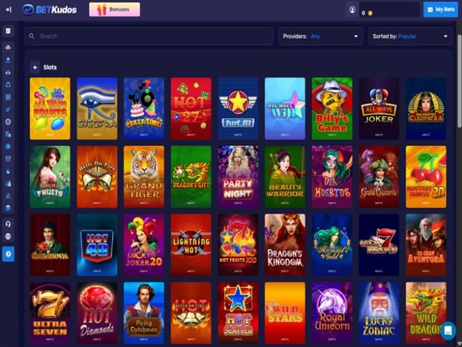वेब पेज बाईं ओर मुख्य मेनू के साथ आता है, जबकि मुख्य क्षेत्र उपलब्ध जुआ सामग्री के लिए आरक्षित है जिसे खिलाड़ी आसानी से ब्राउज़ कर पाएंगे, भले ही उन्होंने अभी-अभी ऑनलाइन जुए की दुनिया की खोज की हो या वे अनुभवी हों और जानते हों कि वे BetKudos पर क्या आज़माना चाहते हैं।