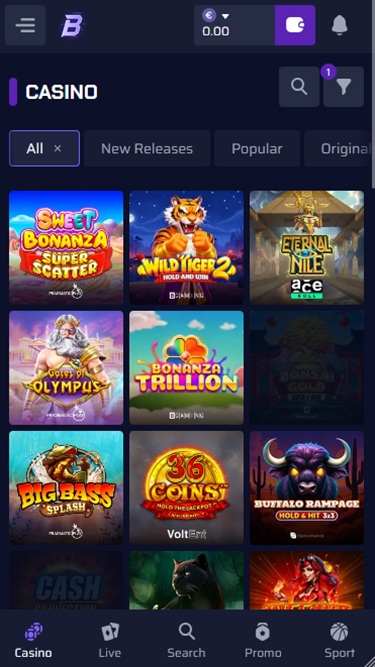 होमपेज का शीर्ष भाग कैसीनो और स्पोर्ट्सबुक दोनों के चल रहे प्रचारों के लिए आरक्षित है। जैसे ही आप मुख्य पृष्ठ पर स्क्रॉल करना शुरू करेंगे, आपको सभी गेम श्रेणियों में विभाजित दिखाई देंगे, जिससे आप अपनी पसंद का गेम तुरंत ढूंढ पाएँगे। बेशक, एक सर्च बार भी है जिसका उपयोग आप न केवल अपने पसंदीदा गेम, बल्कि प्रदाताओं और श्रेणियों को भी खोजने के लिए कर सकते हैं।