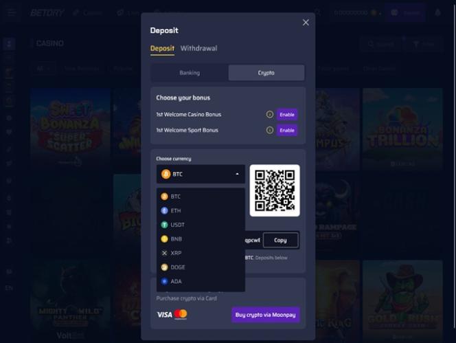 यदि आप वीज़ा और मास्टरकार्ड जैसे कार्ड का उपयोग करना पसंद करते हैं, तो कैसीनो आपको मूनपे के माध्यम से सीधे क्रिप्टो खरीदने की सुविधा देता है।