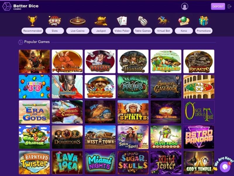 खेलों के मानक सेट के अलावा, बेटरडाइस खिलाड़ियों को अपने दांव लगाने के लिए लाइव डीलर गेम, केनो और वर्चुअल स्पोर्ट्स उत्पाद मिलेंगे।