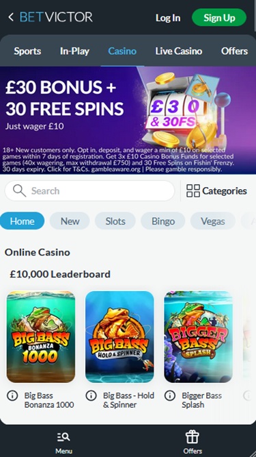 BetVictor कई सॉफ्टवेयर प्रदाताओं द्वारा संचालित है, जिनमें Amaya, Microgaming, Net Entertainment, Playtech, Big Time Gaming, Evolution Gaming, Genesis Gaming, Habanero Systems, HO Gaming, lightningboxgames, Novomatic, Play'n GO, Quickspin, Rabcat, Yggdrasil, Realistic Games, Booming Games, Red Tiger Gaming, IGT, Red Rake Gaming, ReelNRG, TrueLab Games, SpinPlay Games, HungryBear Gaming, On Air Entertainment, Games Global, 2by2 Gaming, Aristocrat, Ash Gaming, bluberi, Blueprint Gaming, EveryMatrix, Games Warehouse, Leander Games, Media Live, NextGen, OpenBet, Push Gaming, Cadillac Jack, Red7Mobile, CORE Gaming, Authentic Gaming, Reflex Gaming, Aspect Gaming, ReelPlay, Aurify Gaming, BB Games, Half Pixel Studios, Eurostar Studios, Beter and Nailed It! Games भी शामिल है। इन डेवलपर्स की संयुक्त लाइब्रेरी, स्लॉट्स, वीडियो पोकर, टेबल गेम्स और Live डीलर कैसीनो को मिलाकर BetVictor सैकड़ों गेम प्रदान करती है।