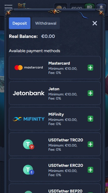 💰 न्यूनतम जमा€10/€30 (Bitcoin)