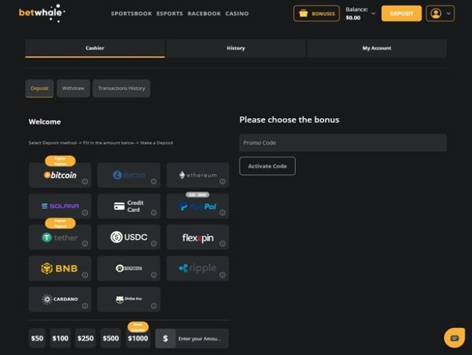 बोनस और प्रमोशन की बात करें तो, BetWhale कैसीनो सीमित पेशकश करता है। जो खिलाड़ी अपना खाता खोलते हैं, वे एक आकर्षक स्वागत बोनस का दावा कर सकते हैं जो उनके शुरुआती अनुभव को एक नए स्तर पर ले जाएगा। हालाँकि, इसके अलावा, हमें बोनस के बारे में कोई अतिरिक्त जानकारी नहीं मिली।
