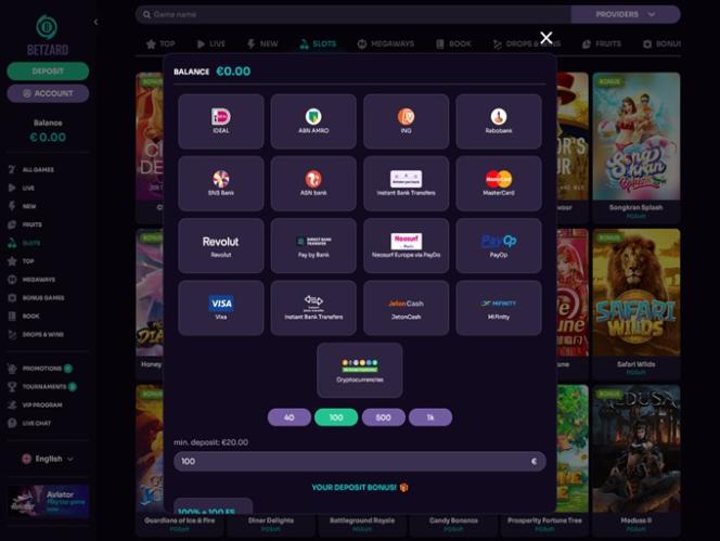 एक बात तो पक्की है, चाहे आप किसी भी जुए के क्षेत्राधिकार से हों, बेटज़ार्ड कैसीनो में आपको जमा और निकासी के लिए कई विकल्प मिलेंगे। कैसीनो का कैशियर व्यापक रूप से इस्तेमाल किए जाने वाले विकल्पों से भरा पड़ा है, और चाहे आप पारंपरिक तरीकों को पसंद करते हों या क्रिप्टो जुए पर स्विच कर चुके हों, आपके लिए अनगिनत संभावनाएँ उपलब्ध होंगी।