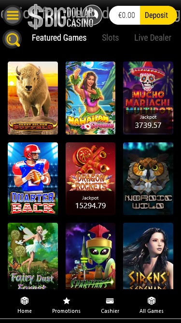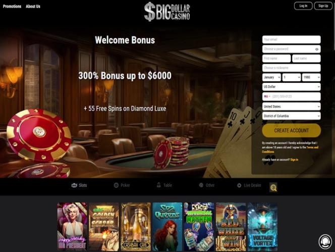 बिग डॉलर कैसीनो में स्लॉट्स का एक अच्छा चयन उपलब्ध है, जिसमें कैसीनो बहुत सारे वीडियो स्लॉट्स और क्लासिक गेम्स का एक छोटा सा चयन प्रदान करता है।
