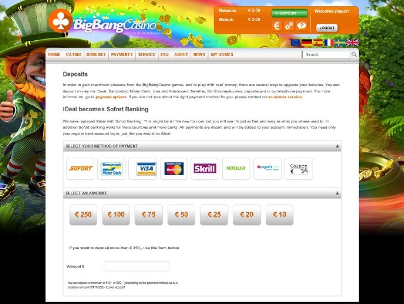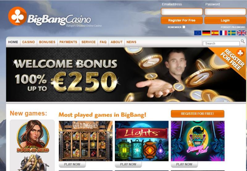 बिगबैंग कैसीनो में फिलहाल कोई कॉम्प पॉइंट नहीं दिया जा रहा है।
