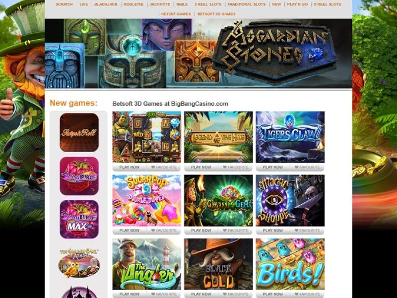 बिगबैंग कैसीनो में खेलने के लिए सैकड़ों स्लॉट उपलब्ध हैं, और साइट पर वीडियो स्लॉट्स का एक विशाल संग्रह और क्लासिक गेम्स का एक छोटा संग्रह भी उपलब्ध है। खिलाड़ियों को बेटसॉफ्ट प्रोग्रेसिव जैकपॉट भी मिलेंगे, जिनमें कई हज़ार डॉलर के शीर्ष पुरस्कार होते हैं।