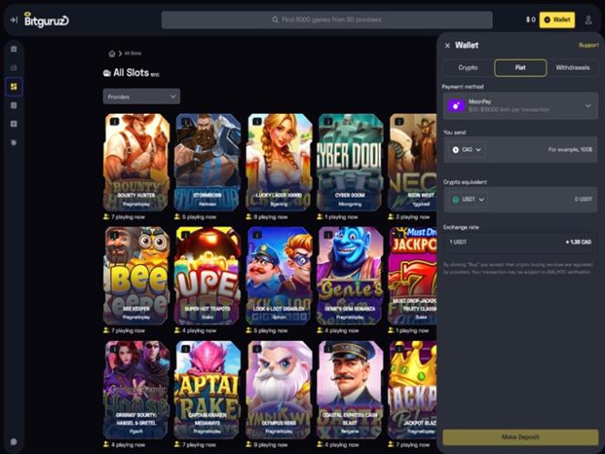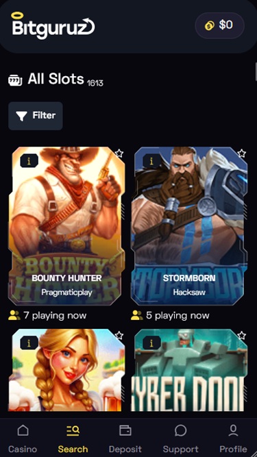 शीर्ष पर स्थित सर्च बार आपको कैसीनो में उपलब्ध 6,000 खेलों में से किसी को भी शीघ्रता से खोजने की सुविधा देता है, जबकि शीर्ष दाएं कोने में स्थित वॉलेट आपको जमा अनुभाग तक ले जाता है।
