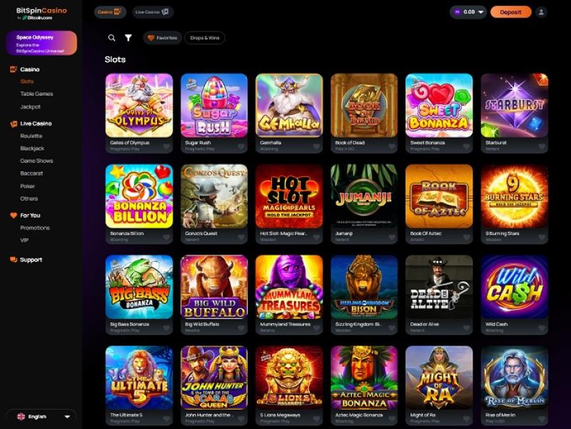 आइए कुछ लोकप्रिय स्लॉट गेम शीर्षकों का उल्लेख करें: स्कारब ट्रेजर, फ्रूट लूप, प्रिंसेस ऑफ पर्ल्स, रॉकेट डाइस, ज़ोरो वाइल्ड हार्ट, वोमबारू, फ्रूटबैट क्रेजी, लावा गोल्ड, स्पिनफिनिटी मैन, स्प्लिट वे रॉयल, डबल डिप्ड, सुपर 7 ब्लैकजैक, टेक द बैंक, टेक द किंगडम, टेक ओलंपस, टेक सांता शॉप, जेलीफ़िश फ्लो, लंदन हंटर, मैजिक ओक, कद्दू पैच, रू रिचेस, सुपर फास्ट हॉट हॉट रिस्पिन, बैंकॉक ड्रीम्स, डेड ऑर अलाइव, डेड ऑर अलाइव 2, डेविल्स डिलाइट, रील रश 2, रॉबिन हुड: शिफ्टिंग रिचेस, स्ट्रीट फाइटर II: द वर्ल्ड वॉरियर स्लॉट, वाइल्ड चेरी ब्लास्ट, पर्ल्स ऑफ इंडिया, सी हंटर, सोलर क्वीन, एज ऑफ द गॉड्स: रूलर ऑफ द सीज, वाइल्ड लावा सैवेज जंगल, ब्रोंको स्पिरिट, ड्रैगन किंगडम - आइज़ ऑफ फायर, द चैंपियंस, जेड बटरफ्लाई, जैमिन जार 2, 3 टिनी गॉड्स, ब्यूटीफुल बोन्स, ब्रेक दा बैंक अगेन रीस्पिन, जेम्स ओडिसी, मैजिक ऑफ सहारा, पेट्स गो वाइल्ड, रैबिट इन द हैट, रेट्रो रील्स डायमंड ग्लिट्ज़, सांता गोज़ वाइल्ड, स्पेक्टैक्युलर व्हील ऑफ वेल्थ, एमबी रेडर - सीक्रेट ऑफ द स्वॉर्ड, वैम्पायर: द मेस्केरेड - लास वेगास, व्हील ऑफ वेल्थ स्पेशल एडिशन, एज़्टेक स्पिन्स, डायनामाइट रिचेस, थ्री मस्किटियर्स, रील हीस्ट, वेल ऑफ विशेज, होम्स एंड द स्टोलन स्टोन्स, जॉनन लेजेंडरियन, ओजविन्स जैकपॉट्स, स्पाइना कोलाडा, द डार्क जोकर राइजेज, वाइकिंग्स गो टू हेल, लैरी द लेप्रेचुन, रेलिक हंटर्स एंड द बुक ऑफ फेथ...
