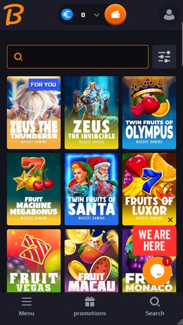 ज़ीउस द थंडरर, ज़ीउस द इनविंसिबल, ट्विन फ्रूट्स ऑफ़ ओलंपस, फ्रूट मशीन मेगाबोनस, ट्विन फ्रूट्स ऑफ़ सांता, फ्रूट्स ऑफ़ लक्सर, फ्रूट वेगास, स्पेस जेम्स रॉकब्लॉक्स, फ्रूट मकाऊ, फ्रूट मोनाको, डबल ट्रिपल फ्रूट्स, स्टिकी फ्रूट मैडनेस, जोकर कॉइन्स मेगावेज़, जंगल गोल्ड मेगावेज़, कॉइन किंग बेटो, गोल्डन ऑक्टोपस, पिग्गी टैप, कॉइन फ्लिन, वाइल्ड कॉइन्स, स्पाइसी कैंडीज़ रॉकब्लॉक्स, फ्रूट डिस्को: मेगा स्टैक्स, बिग बास बोनान्ज़ा, वुड लक, बिग बास स्पलैश, शुगर रश, स्वीट बोनान्ज़ा, मास्टर जोकर, पिज्जा पिज्जा पिज्जा, कॉस्मिक कैश, बिग बास अमेज़न एक्सट्रीम, ग्रेट राइनो मेगावेज़, कांगो कैश, स्टारलाईट प्रिंसेस, बिग बास बोनान्ज़ा कीपिंग इट रील, क्लब ट्रॉपिकाना, फ्लोटिंग ड्रैगन, विजडम ऑफ़ एथेना, क्वीनी, वाइल्ड वेस्ट गर्ल्स, वाइल्ड वेस्ट गोल्ड मेगावेज़, बिग बास ब्लिज़ार्ड क्रिसमस कैच, और बहुत कुछ।