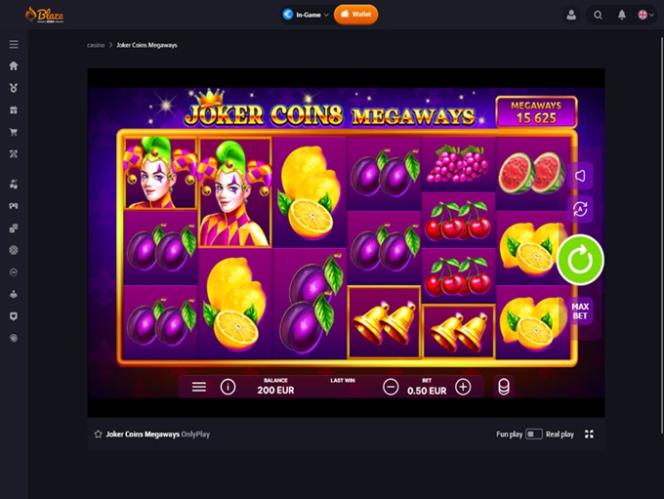 यह भी बता दें कि ब्लेज़ स्पिन्स एक क्रिप्टो-फ्रेंडली कैसीनो है जो कैसीनो, लाइव कैसीनो , टेबल गेम्स और वर्चुअल स्पोर्ट जैसी श्रेणियों में सुव्यवस्थित उच्च-स्तरीय सामग्री प्रदान करता है। इसमें एक लॉयल्टी प्लान, साथ ही अन्य आकर्षक प्रमोशनल ऑफरऔर पीवीपी बैटल भी शामिल हैं।