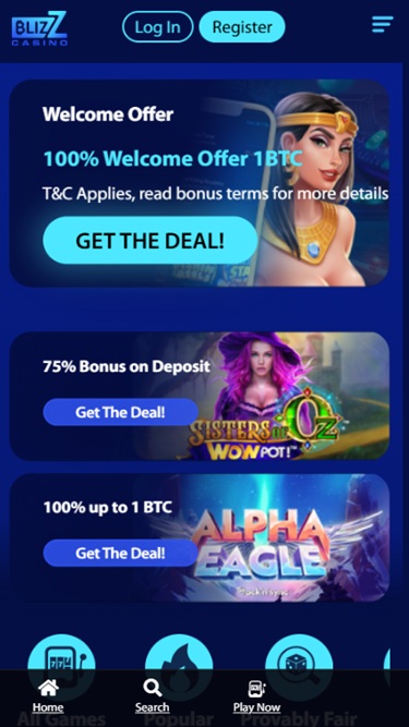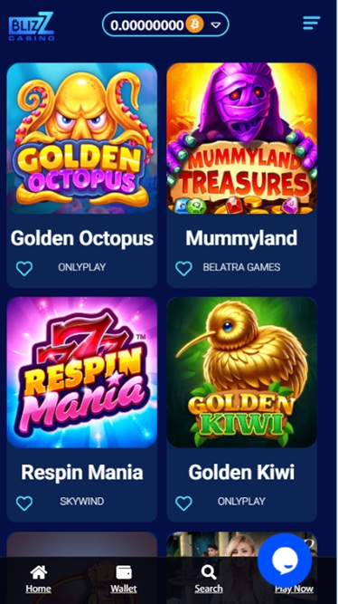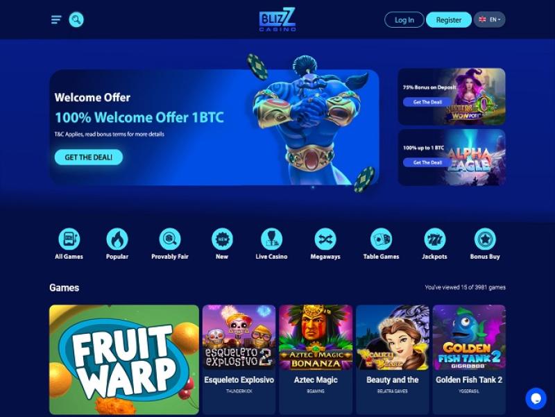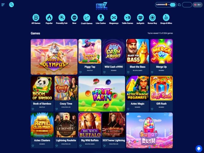 समृद्ध गेमिंग लाइब्रेरी को कैसीनो और लाइव कैसीनो अनुभागों में व्यवस्थित किया गया है, और ब्लिज़ कैसीनो में पंटर्स के प्रवास को रोचक बनाने के लिए रेस और प्रमोशन भी हैं।