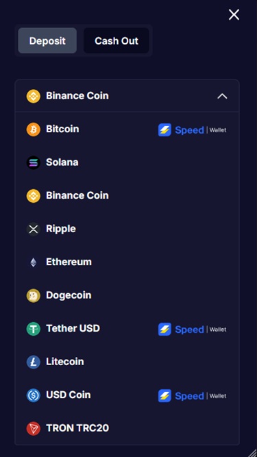 चूँकि यह प्लेटफ़ॉर्म पूरी तरह से क्रिप्टो पर आधारित है, इसलिए इसमें कोई आश्चर्य की बात नहीं है कि आप जमा और निकासी दोनों के लिए ढेरों अलग-अलग कॉइन का इस्तेमाल कर सकते हैं। अगर यह आपकी पसंदीदा भुगतान विधि है, तो आपके लिए यह एक बेहतरीन विकल्प है।