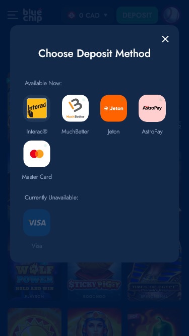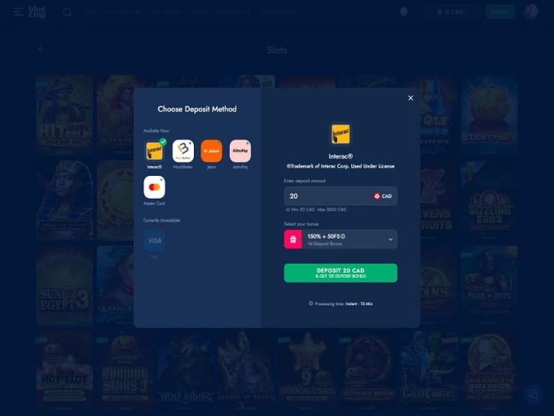 Blue Chip Casino पर बैंकिंग विकल्प