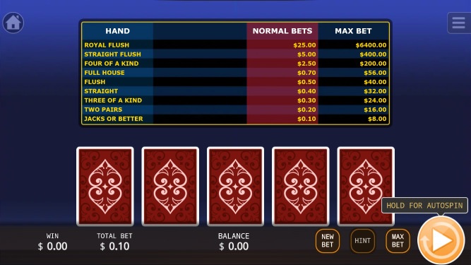 | Jacks or Better | 98.25% | हाँ | - | 1-2-3-4-6-9-20-40-800 | नहीं |