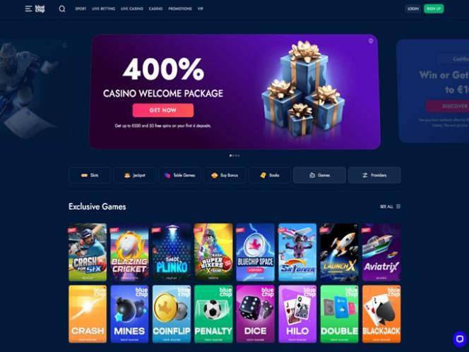 ब्लू चिप एक ऑनलाइन कैसीनो और स्पोर्ट्स बेटिंग ऑपरेटर है जो कुराकाओ के कानूनों के तहत विनियमित है और एंटिलीफोन, नेवादा द्वारा लाइसेंस प्राप्त है। यह एक क्रिप्टो-फ्रेंडली गेमिंग ब्रांड है जो कनाडा के खिलाड़ियों के लिए है, जिसमें ओंटारियो के जुआरी शामिल नहीं हैं।