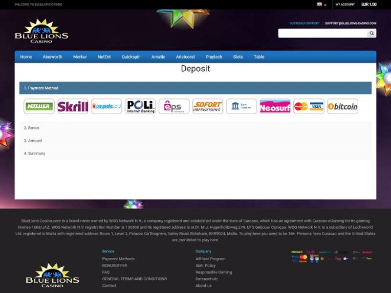ब्लूलायंस कैसीनो एक ऑनलाइन सट्टेबाजी साइट है जिसका स्वामित्व और संचालन कुराकाओ स्थित WOG Network NV द्वारा किया जाता है। यह कैसीनो जर्मन सट्टेबाजी बाज़ार पर केंद्रित है और इसमें खेलों की एक अच्छी लाइब्रेरी और उचित भुगतान समय उपलब्ध है, हालाँकि कुछ सट्टेबाज़ मानक से ज़्यादा दांव लगाने की शर्तों के कारण निराश हो सकते हैं।