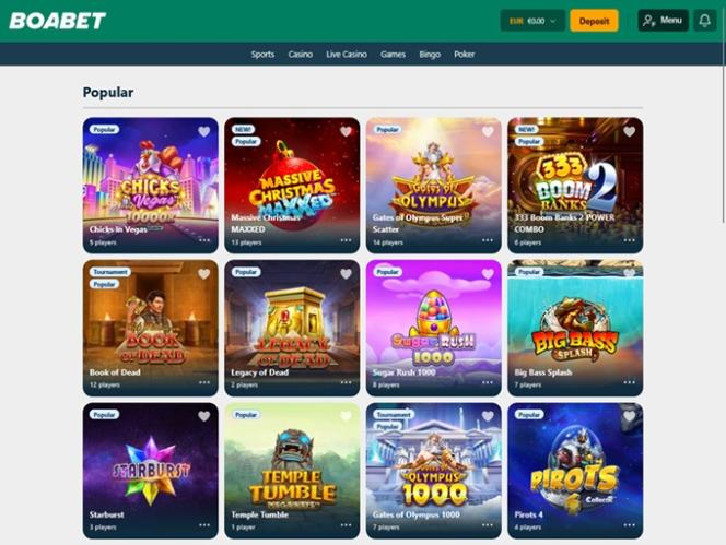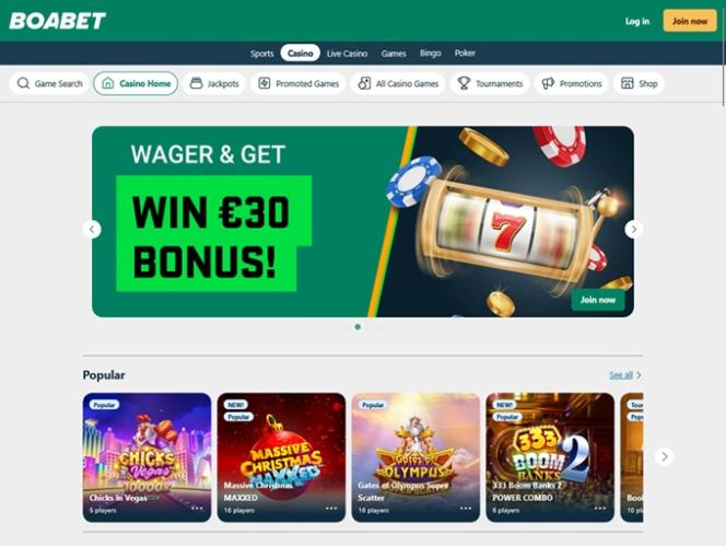 BoaBet एक बेहतरीन ऑनलाइन कैसीनो है जो ऑनलाइन स्लॉट, लाइव डीलर, टेबल गेम, बिंगो, कीनो और स्क्रैच कार्ड सहित कैसीनो गेम्स की अपनी विविध सूची पर ज़ोर देता है, साथ ही कई स्पोर्ट्स बेटिंग विकल्प भी उपलब्ध कराता है। यह वेबसाइट थाईलैंड, वियतनाम, हंगरी, नॉर्वे, क्रोएशिया और कनाडा के खिलाड़ियों के लिए खुली है और उन्हें सभी गेम्स खेलने और आकर्षक प्रमोशन और बोनस का लाभ उठाने के लिए आमंत्रित करती है।
