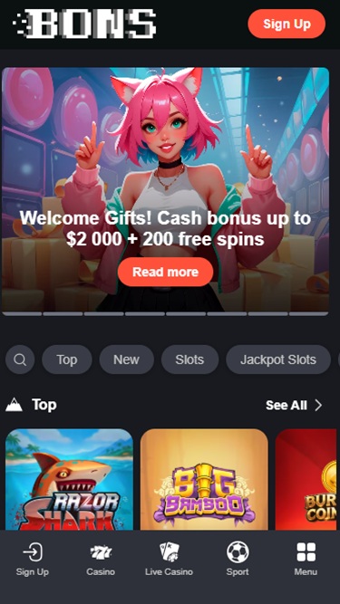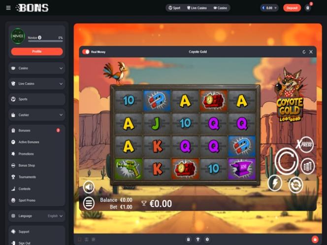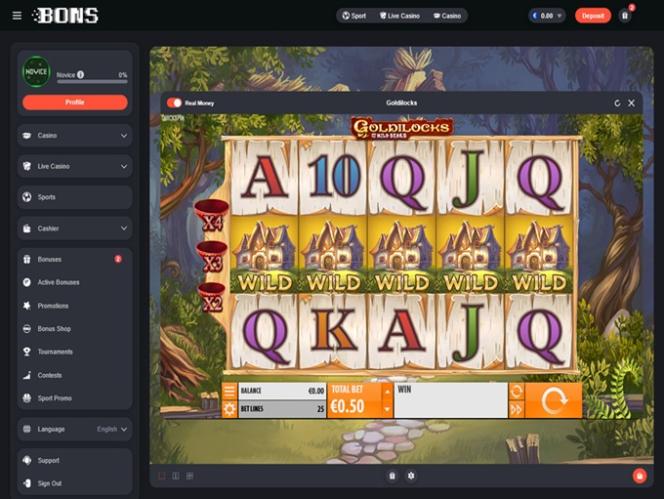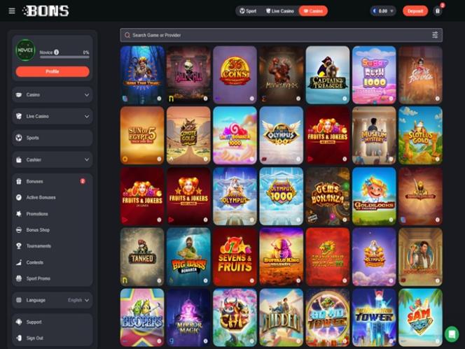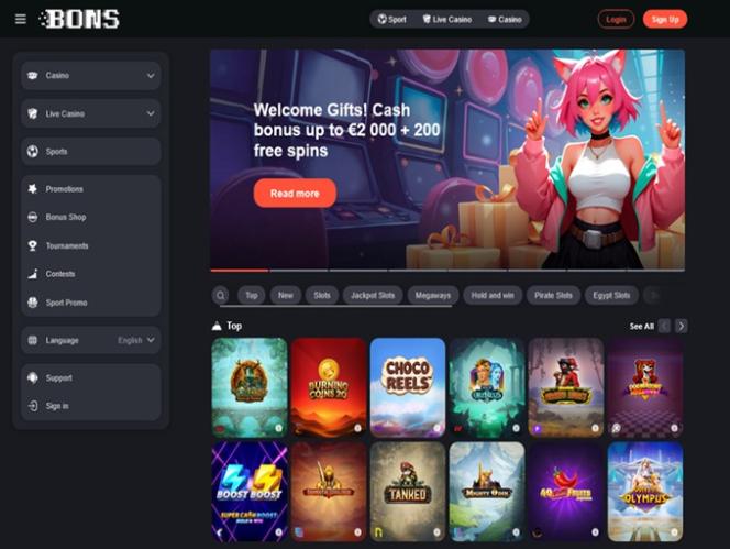 यह कैसीनो मुख्य रूप से जापान, दक्षिण कोरिया और भारत के खिलाड़ियों के लिए है और कुछ iGaming दिग्गजों द्वारा संचालित है। "बोन्स" का अर्थ है "खेलों पर दांव लगाना", लेकिन कैसीनो का ऑफर काफी प्रभावशाली है। पंटर्स 4000 से ज़्यादा ऑनलाइन स्लॉट गेम्स वाले विशाल गेम कलेक्शन से गेम आज़मा सकते हैं। इसके अलावा, पंटर्स उतने ही शानदार लाइव-डीलर और कैसीनो गेम्स सेक्शन का भी आनंद ले सकते हैं।