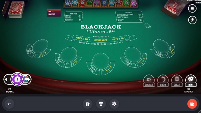 | Blackjack Surrender | खड़ा होना | नहीं | कोई भी 2 | 1 | नहीं | - | - | हाँ | 99.65% | 6 | नहीं |