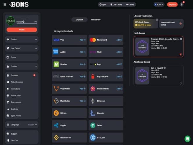 कैसीनो कैशियर क्रिप्टोकरेंसी सहित भुगतान विधियों की एक विस्तृत संख्या का समर्थन करता है, इसलिए बोनस कैसीनो से जमा करना या निकासी करना कोई परेशानी नहीं होगी, चाहे आप किसी भी जुआ क्षेत्राधिकार से संबंधित हों।