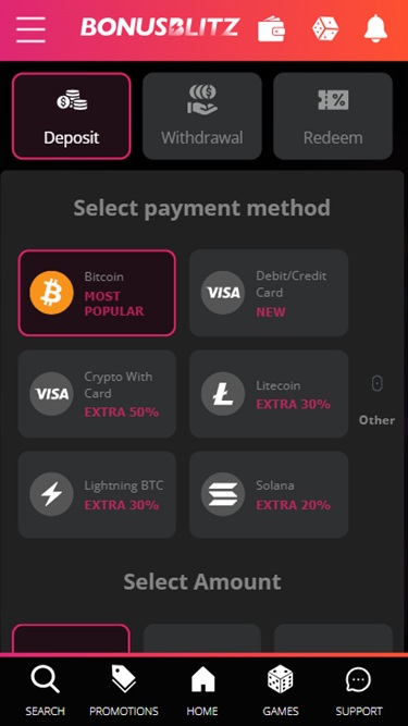 बोनस ब्लिट्ज़ कैसीनो में बैंकिंग के ढेरों विकल्प उपलब्ध हैं। जो लोग क्रिप्टोकरेंसी को अपनी मुख्य भुगतान विधि के रूप में इस्तेमाल करना चाहते हैं, उन्हें यह जानकर खुशी होगी कि वे ऐसा आसानी से कर पाएँगे। खिलाड़ी वीज़ा , मास्टरकार्ड, स्क्रिल, नेटेलर और अन्य जैसे कई अन्य लोकप्रिय विकल्पों में से भी चुन सकते हैं।