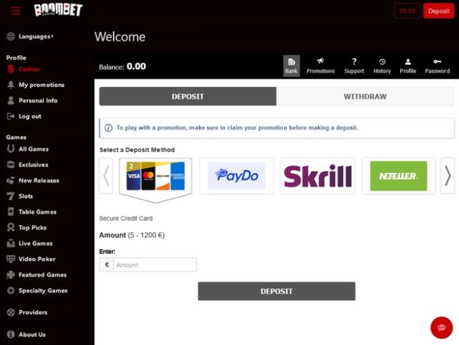 बूमबेट कैसीनो के आक्रामक नियम और शर्तें एक अच्छे ऑनलाइन कैसीनो को पूरी तरह से बेकार बना देती हैं। हम खिलाड़ियों को यहाँ साइन अप करने और जमा करने की सलाह नहीं देते, बल्कि हम आपको किसी ज़्यादा विश्वसनीय साइट पर जाने की सलाह देते हैं।