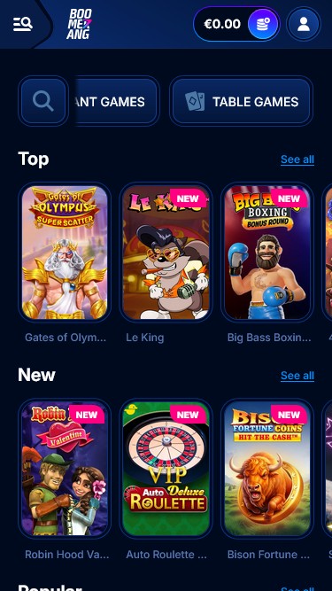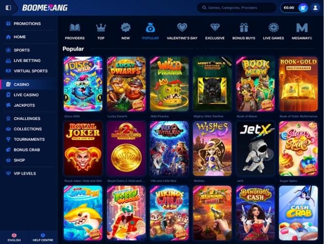 बूमरैंग बेट एक क्रिप्टो-फ्रेंडली ऑनलाइन कैसीनो और स्पोर्ट्सबुक है, जो ढेर सारे ऑनलाइन कैसीनो गेम्स और स्पोर्ट्स इवेंट्स पेश करता है। चाहे आप स्लॉट गेम्स, ब्लैकजैक, रूलेट और बैकरेट जैसे टेबल गेम्स के शौकीन हों या फिर खेलों के बड़े प्रशंसक हों, यहां आपको अपनी पसंद का गेम जरूर मिल जाएगा।