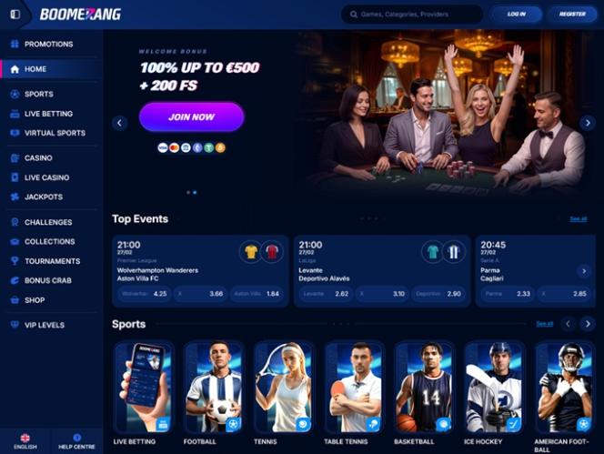 जैसा कि हमने पहले बताया, बूमरैंग बेट में एक स्पोर्ट्सबुक सेक्शन भी है जहाँ आप खेल मैचों पर दांव लगा सकते हैं, जिनमें प्रीमियर लीग, सीरी ए, एनएचएल और एनबीए जैसी सबसे लोकप्रिय प्रतियोगिताएं और इवेंट शामिल हैं। इतना ही नहीं, आप वर्चुअल स्पोर्ट्स और ईस्पोर्ट्स पर भी दांव लगा सकते हैं, जिनकी लोकप्रियता लगातार बढ़ रही है।