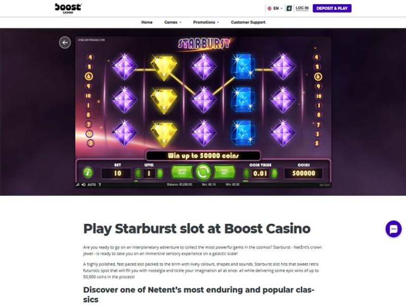 बूस्ट कैसीनो में एक लाइव डीलर अनुभाग भी है, और जिस तरह से खेलों को आम तौर पर वर्गीकृत किया जाता है, वह ब्राउज़िंग अनुभव को बहुत आसान बनाता है, नए शीर्षकों और जैकपॉट वाले खेलों को एक अलग श्रेणी में अलग करता है।