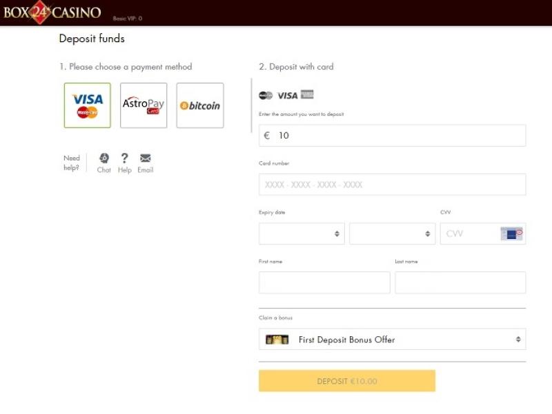 बॉक्स 24 कैसीनो एक डेकमीडिया कैसीनो है जो 2009 से संचालित हो रहा है। कुराकाओ में लाइसेंस प्राप्त, बॉक्स 24 टॉपगेम सॉफ़्टवेयर द्वारा संचालित है जो खिलाड़ियों को विभिन्न प्रकार के कैसीनो गेम खेलने की सुविधा देता है। कई लोग इस कैसीनो को टॉपगेम सॉफ़्टवेयर का उपयोग करने वाले शीर्ष ऑपरेटरों में से एक मानते हैं, जिसे दुर्भाग्य से कई कमज़ोर कैसीनो ने अपना लिया है।कैसीनो जानकारी