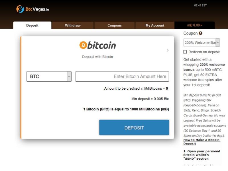 BtcVegas.io पर बैंकिंग विकल्प