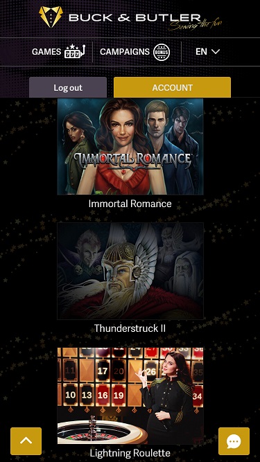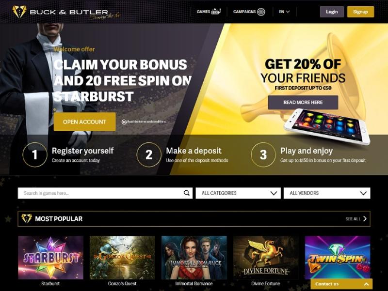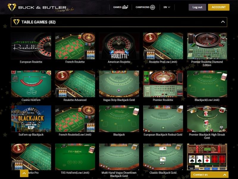बक एंड बटलर में उपलब्ध खेलों में Slots सबसे बड़ा हिस्सा हैं, जहाँ दर्जनों गेम उपलब्ध हैं, जिनमें Scarface , Frankenstein और कई अन्य जैसे लाइसेंस प्राप्त शीर्षक शामिल हैं। कैसीनो में कई बड़े प्रगतिशील जैकपॉट भी हैं, जिनमें लाखों के इनाम शामिल हैं।