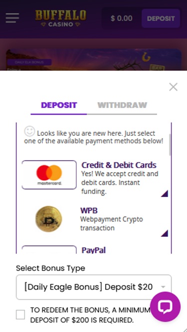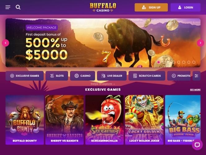 बफ़ेलो कैसीनो एक ऑनलाइन कैसीनो है जो मुख्य रूप से संयुक्त राज्य अमेरिका और कनाडा के जुआरियों पर केंद्रित है। ध्यान रखें कि इस समीक्षा को लिखते समय यह ब्रांड बिना किसी जुआ लाइसेंस के संचालित हो रहा था।