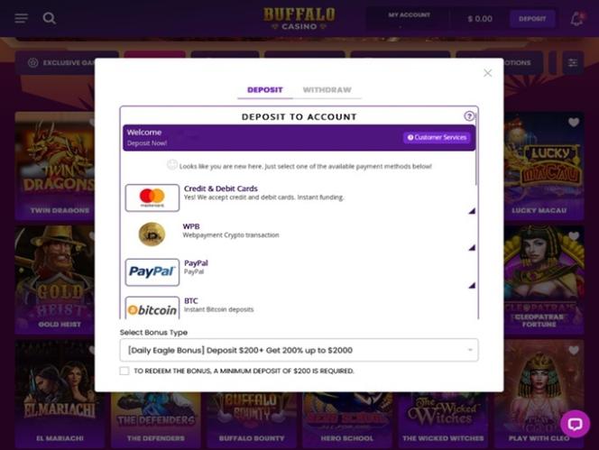 बफ़ेलो कैसीनो में प्रमोशनल अवसरों की बात करें तो, जुआरियों के पास कई विकल्प उपलब्ध होंगे, जिनमें नए पंजीकृत कैसीनो खिलाड़ियों के लिए स्वागत पैकेज भी शामिल है। ये ऑफ़र कैसीनो में पहले तीन जमा राशियों के लिए आरक्षित हैं। उदार प्रारंभिक ऑफ़र के अलावा, सदस्य दैनिक कैसीनो बोनस , अतिरिक्त स्पिन और अन्य कई सुविधाओं का लाभ उठा सकते हैं।