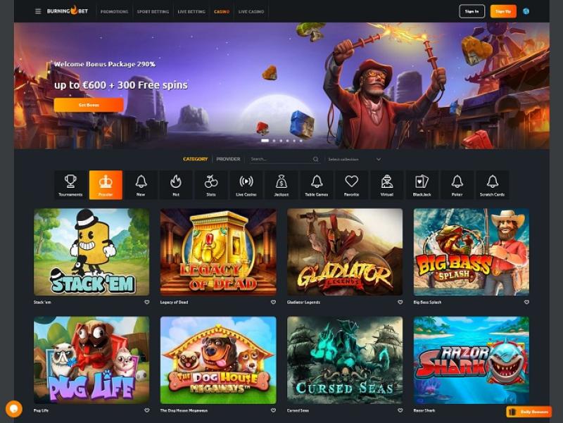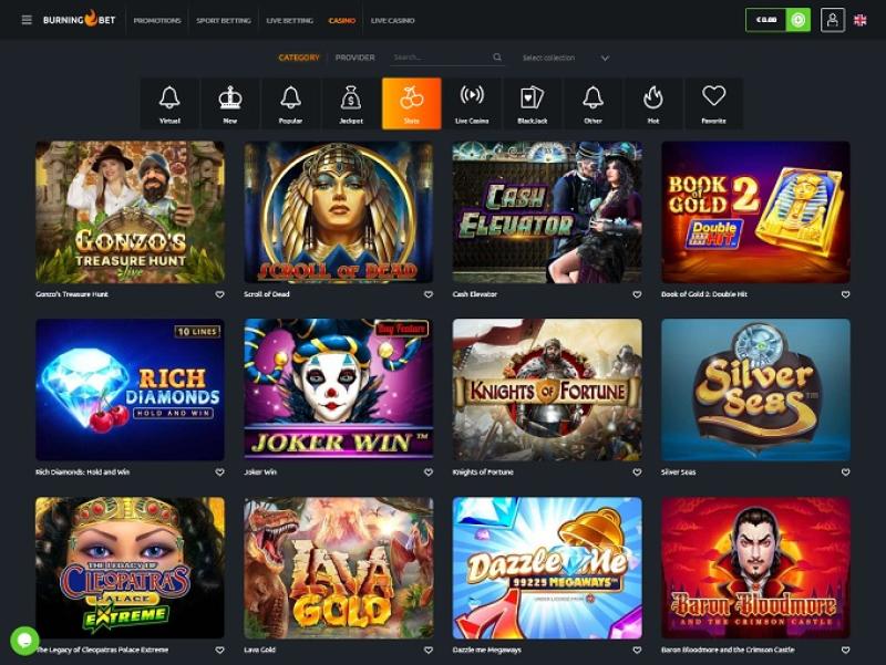 जैसा कि परिचय में बताया गया है, बर्निंगबेट कैसीनो गेम प्रदाताओं के एक प्रभावशाली नेटवर्क के साथ सहयोग करता है। कई सफल साझेदारियों के कारण, इसके कैटलॉग में गेम्स का सबसे विविध संग्रह प्रदर्शित होता है। जिन नामों के उत्पाद लॉबी का हिस्सा हैं, उनमें Play'n GO, Pragmatic Play, Push Gaming, Yggdrasil , ELK Studios, आदि शामिल हैं।