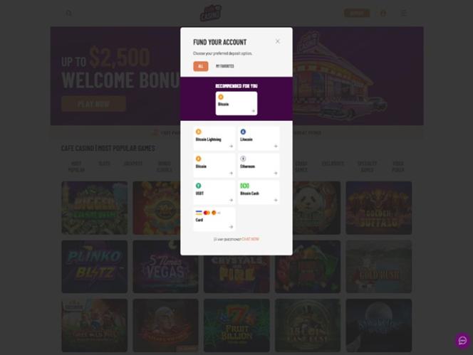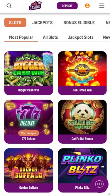 कैफ़े कैसीनो में खेलने के लिए ढेरों वीडियो स्लॉट उपलब्ध हैं, जिनमें RTG और TopGame के गेम्स भी शामिल हैं। कैफ़े कैसीनो में कुछ प्रोग्रेसिव जैकपॉट भी उपलब्ध हैं, जिनमें भाग्यशाली लोगों के लिए बड़े नकद पुरस्कार उपलब्ध हैं। क्लासिक स्लॉट्स अब थोड़े पुराने ज़माने के लगते हैं, लेकिन फिर भी खेलने के लिए कुछ बेहतरीन गेम्स मौजूद हैं।