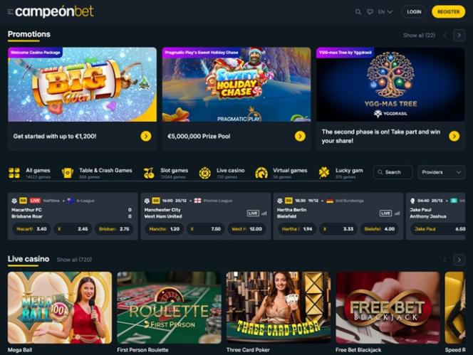 कैंपियनबेट एक नई ऑनलाइन सट्टेबाजी साइट है जो लैटिन अमेरिकी गेमिंग बाज़ार पर केंद्रित है। इस साइट ने एक पूर्ण कैसीनो, स्पोर्ट्सबुक और पोकर रूम के साथ शुरुआत की है, जिसमें कुछ बड़े नाम, अच्छी बैंकिंग और उचित शर्तें शामिल हैं, जो इसे लैटिन अमेरिका में काम करने वालों के लिए एक बेहतरीन विकल्प बनाती हैं।