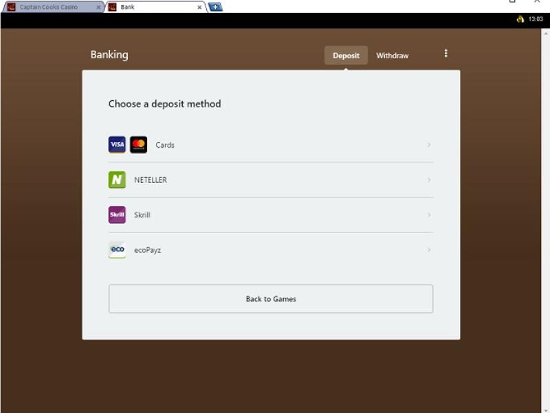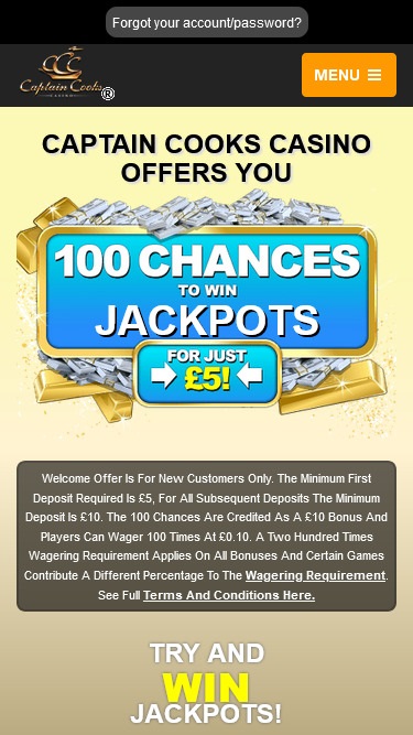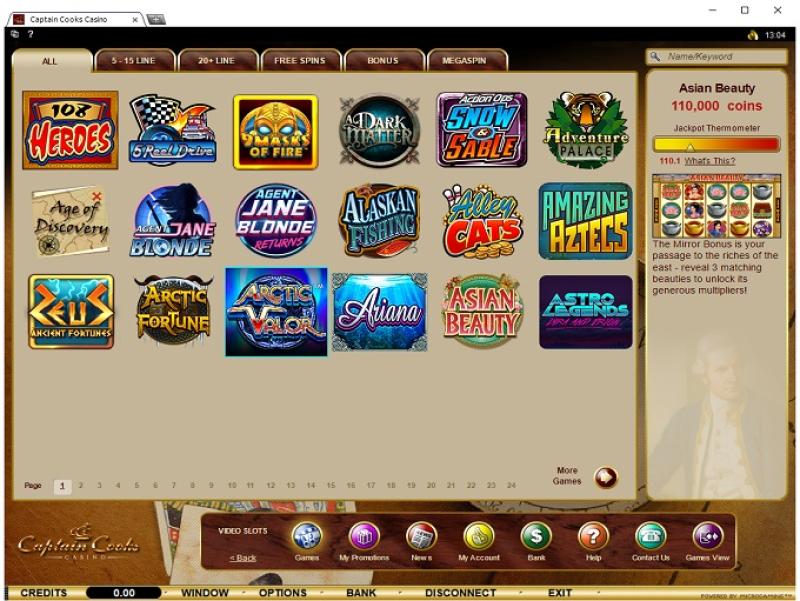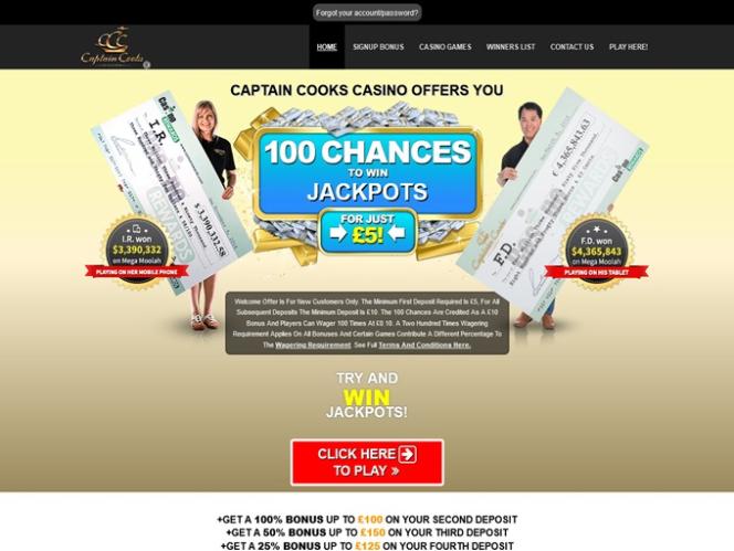 Captain Cooks Casino 15 से ज़्यादा वर्षों से दुनिया भर के सट्टेबाज़ों को ऑनलाइन कैसीनो सट्टेबाजी सेवाएँ प्रदान कर रहा है। इस कैसीनो की प्रतिष्ठा काफ़ी बढ़ गई है, और यह अपने ग्राहकों को ढेरों बेहतरीन गेम, उत्कृष्ट सेवा और एक मज़बूत बैंकिंग प्रणाली प्रदान करता है।कैसीनो जानकारी
