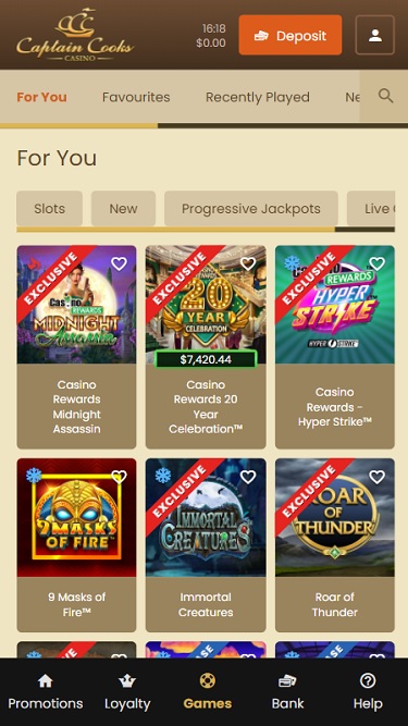 Captain Cooks Casino Microgaming, Evolution Gaming, Rabcat, Triple Edge Studios, Northern Lights Gaming, Stormcraft Studios, Electric Elephant Games, All41 Studios, Gameburger Studios, Pulse 8 Studios, Neon Valley Studios, SpinPlay Games, Real Dealer Studios, GONG Gaming, On Air Entertainment, Buck Stakes Entertainment, Games Global, Old Skool Studios, Foxium, Just For The Win, PearFiction Studios, Slingshot Studios, Fortune Factory Studios, Crazy Tooth Studio, Alchemy Gaming, Snowborn Games, Gold Coin Studios, Half Pixel Studios, Eurostar Studios and Aurum Signature Studios द्वारा संचालित है, जो अपने ग्राहकों को एक वेब-आधारित और डाउनलोड करने योग्य प्लेटफ़ॉर्म के माध्यम से सैकड़ों गेम प्रदान करता है। जो लोग अपने स्मार्टफ़ोन या टैबलेट पर कैसीनो गेम खेलना चाहते हैं, उनके लिए एक बेहतरीन मोबाइल साइट भी उपलब्ध है।Blackjack