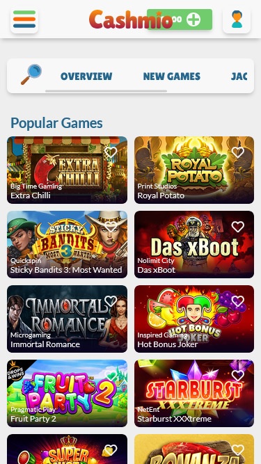 कैशमियो कैसीनो Microgaming, Net Entertainment, 1x2gaming, Barcrest, Big Time Gaming, ELK Studios, Evolution Gaming, iSoftBet, lightningboxgames, Play'n GO, Quickspin, Rabcat, Relax Gaming, Thunderkick, Yggdrasil, Endorphina, Pragmatic Play, Nolimit City, Red Tiger Gaming, IGT, SpinPlay Games, Games Global, 2by2 Gaming, Aristocrat, Bally Technologies, Blueprint Gaming, Leander Games, NextGen, NYX Interactive, Push Gaming, WMS, Spigo, Scientific Games, Side City Studios, Authentic Gaming, Foxium, Betdigital, Just For The Win, Slingshot Studios, Crazy Tooth Studio and ReelPlay द्वारा संचालित है, और इसके गेम एक वेब-आधारित इंस्टेंट प्ले प्लेटफ़ॉर्म के माध्यम से उपलब्ध कराए जाते हैं जो आपको अपने इंटरनेट ब्राउज़र के माध्यम से पंजीकरण, खेलने और जमा करने की सुविधा देता है। मोबाइल गेम भी उपलब्ध हैं, जिससे आप अपने स्मार्टफोन या टैबलेट के माध्यम से बड़ी संख्या में गेम खेल सकते हैं।