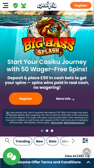 वफादारी को पुरस्कृत करने के अलावा, Casiku अपनी प्रमोशनल योजना के ज़रिए आपके अनुभव को और भी बेहतर बनाना चाहता है। यह सच है कि प्रमोशन और बोनस की संख्या और भी ज़्यादा हो सकती है, लेकिन हमें पूरा विश्वास है कि ब्रांड खिलाड़ियों के लिए अपने रिवॉर्ड्स का दायरा बढ़ाएगा। शुरुआत में, आप अपनी पहली जमा राशि पर साइन-अप वेलकम बोनस का दावा कर सकते हैं।