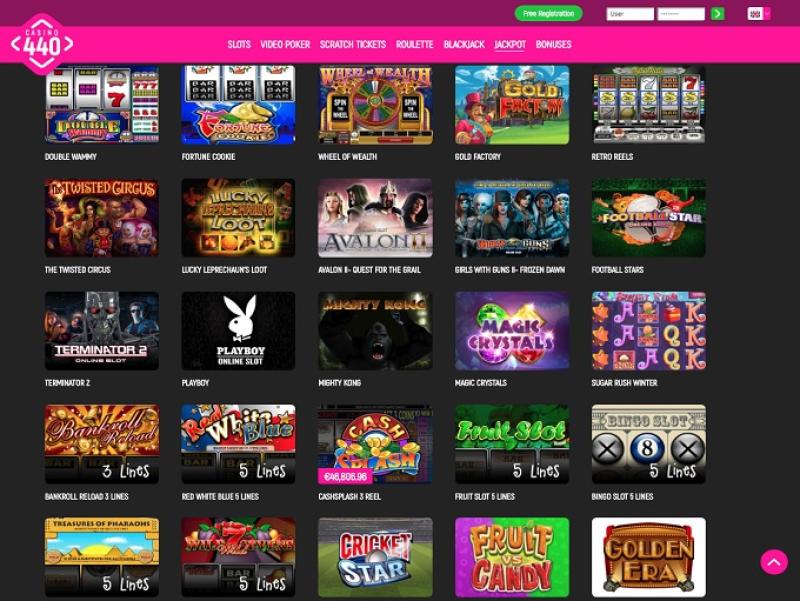 कैसीनो 440 Microgaming, Genesis Gaming, Pragmatic Play, Games Global, NextGen and Inteplay द्वारा संचालित है, और कैसीनो अपने गेम एक वेब-आधारित प्लेटफ़ॉर्म के माध्यम से प्रदान करता है। एक मोबाइल साइट भी चलते-फिरते खेलने की सुविधा देती है।
