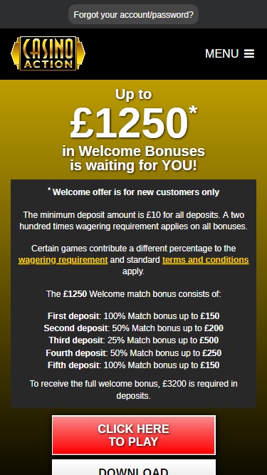 नीचे Casino Action पर पेश किए जा रहे वर्तमान प्रमोशनों की सूची दी गई है।