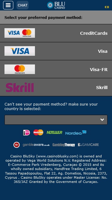 कैसीनो ब्लू एक ऑनलाइन सट्टेबाजी साइट है जिसने 2014 में अपनी शुरुआत की थी और इसका स्वामित्व और संचालन कॉनन गेमिंग लिमिटेड के पास है। इस कैसीनो में एक अच्छी-खासी गेमिंग लाइब्रेरी है और इसने अपने बेहतरीन बोनस और तेज़ भुगतान समय के लिए ख्याति अर्जित की है।कैसीनो जानकारी