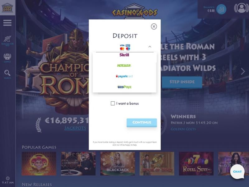 कैसीनो गॉड्स Microgaming, Net Entertainment, Big Time Gaming, Evolution Gaming, Ezugi, iSoftBet, Oryx, Play'n GO, Quickspin, Relax Gaming, Yggdrasil, Wazdan, Pragmatic Play, Red Tiger Gaming, Fantasma Games, Skywind, Gameburger Studios, TrueLab Games, Games Global, NYX Interactive, Push Gaming, Gamomat, Half Pixel Studios, Eurostar Studios and Aurum Signature Studios द्वारा संचालित है, जो एक वेब-आधारित इंस्टेंट प्ले प्लेटफ़ॉर्म के माध्यम से प्रदान किया जाता है, जिसके लिए आपको किसी डाउनलोड की आवश्यकता नहीं होती। यह पेज आपके ब्राउज़र के माध्यम से लोड होता है, और आप इसके माध्यम से सभी कार्य करते हैं। कैसीनो मोबाइल प्ले को सपोर्ट करता है, जिससे आप चाहें तो अपने स्मार्टफ़ोन के माध्यम से भी जुआ खेल सकते हैं।