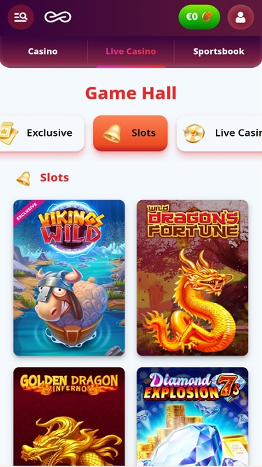 सबसे पहले, हम यह बताना चाहेंगे कि वेबसाइट कितनी शानदार दिखती है। ऑनलाइन कैसीनो प्लेटफ़ॉर्म का डिज़ाइन न्यूनतम दृष्टिकोण और चटख गुलाबी और बैंगनी रंगों का मिश्रण है। यह देखने में वाकई आकर्षक और मनमोहक लगता है, जो पहली नज़र में ही बहुत मायने रखता है।